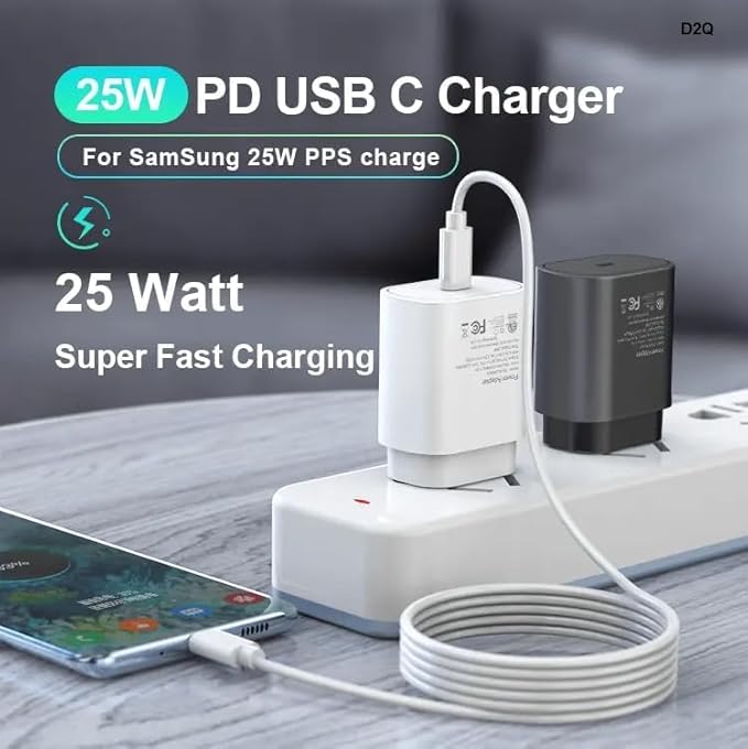 Samsung 25W Type C Super Fast Charging Adapter Compatible with Samsung M35, M05, S25, F06, A06, F55, F15, A15, M55s, M14, M15, M33, M34, F05, A14, A15, F14, S23, S24, Charge Adaptor 25 Watt, White
